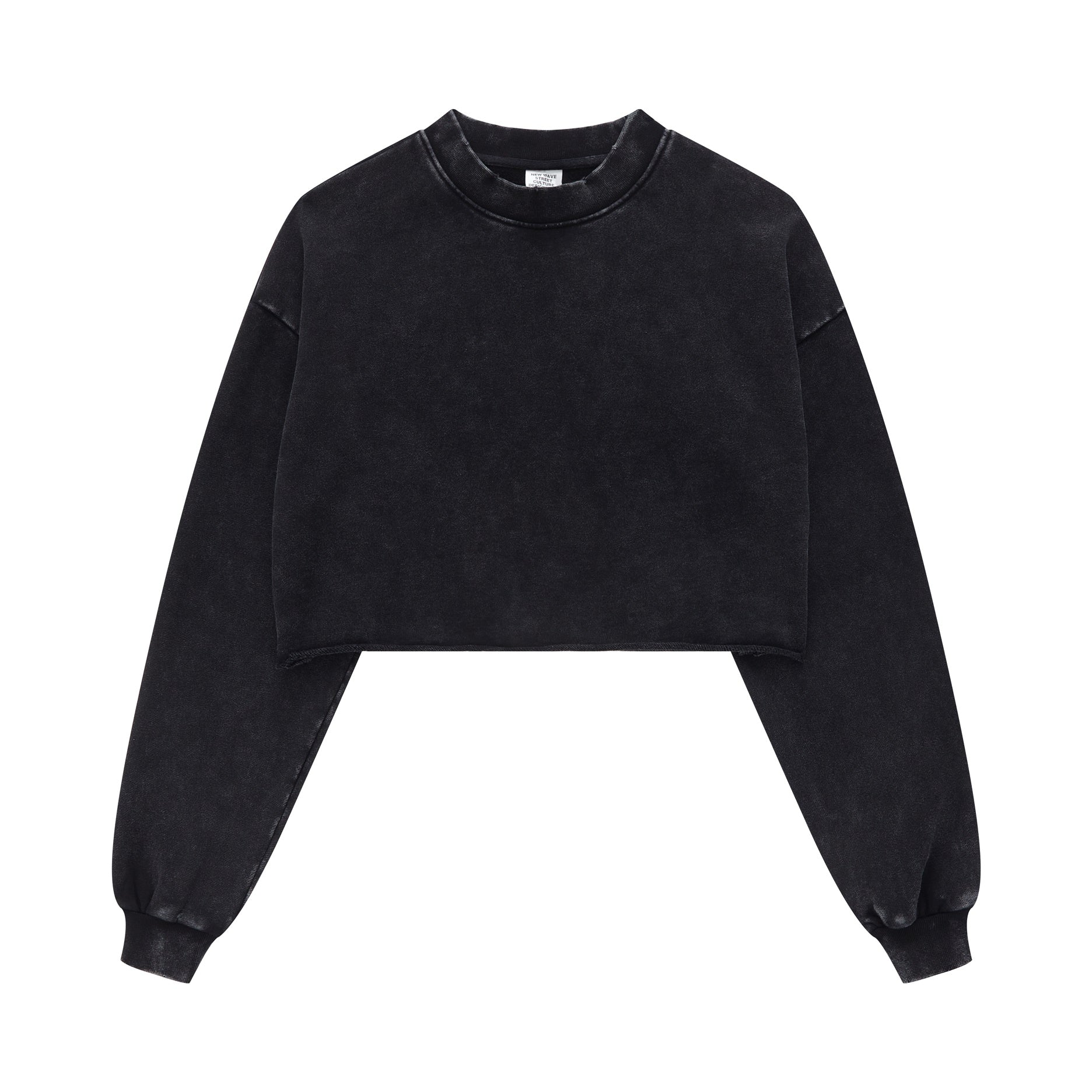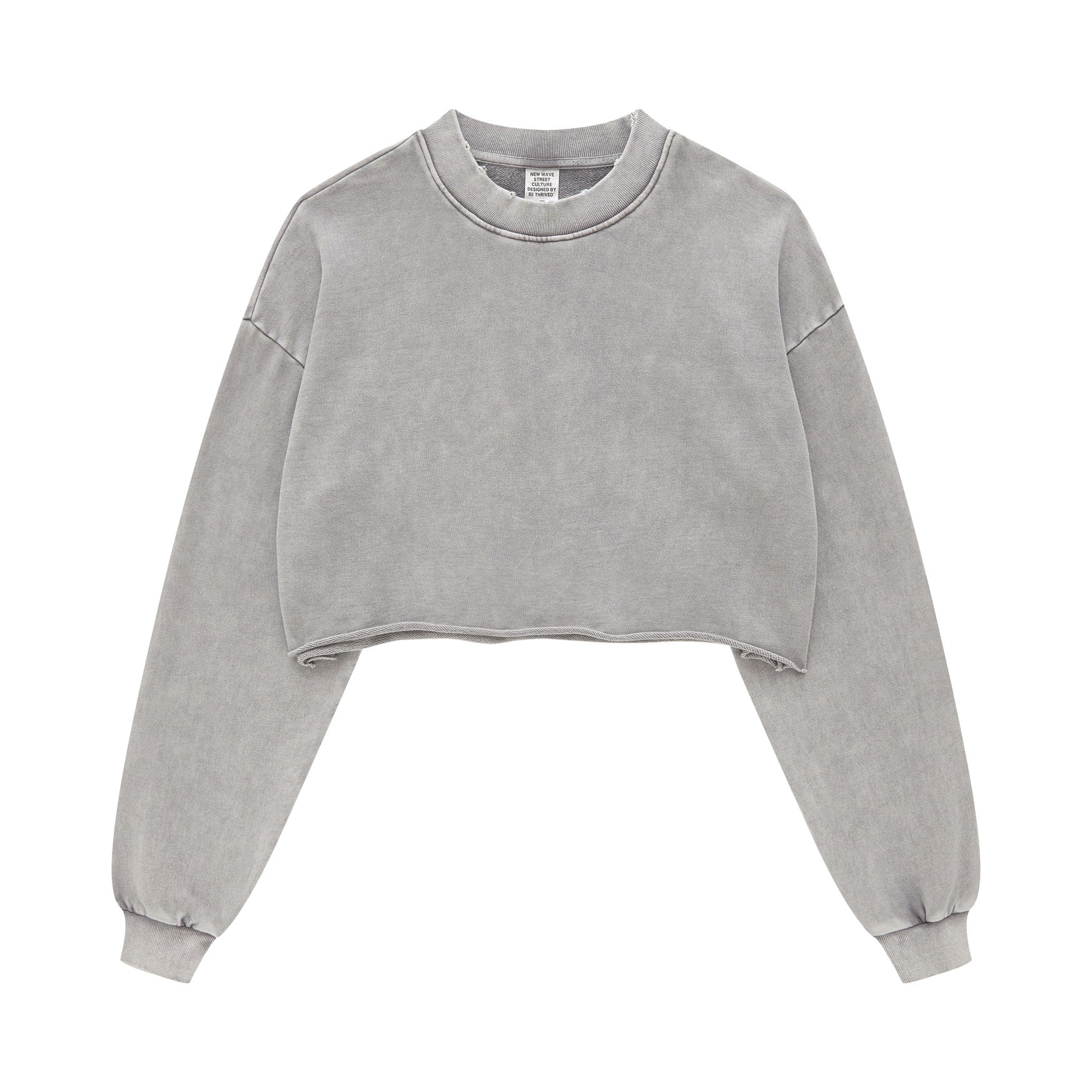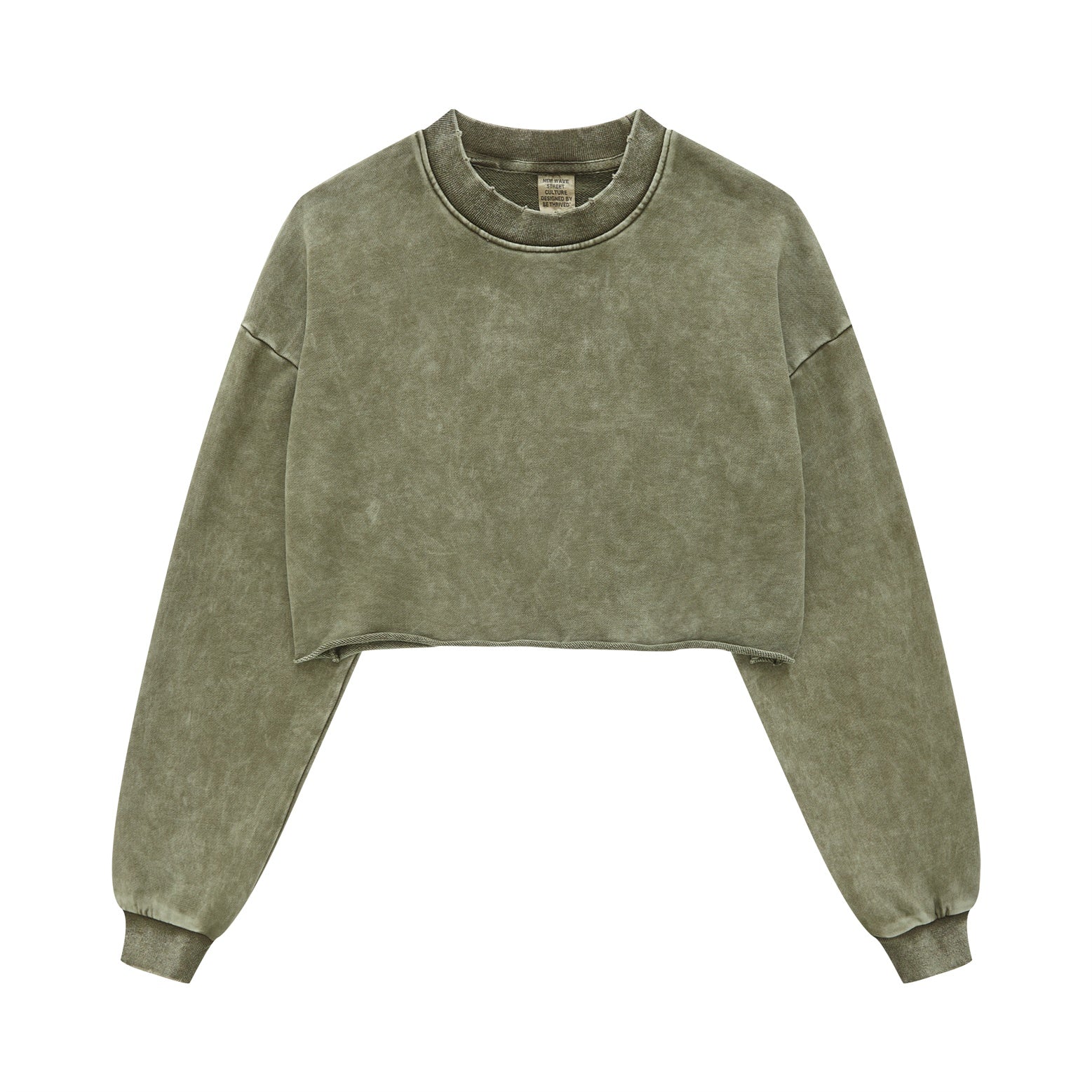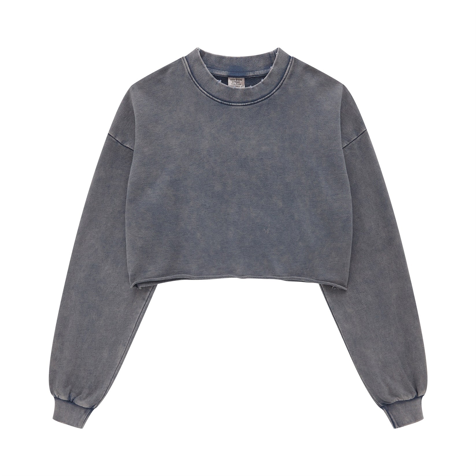 - Stone wash long sleeves crop t shirt, stylish & comfy