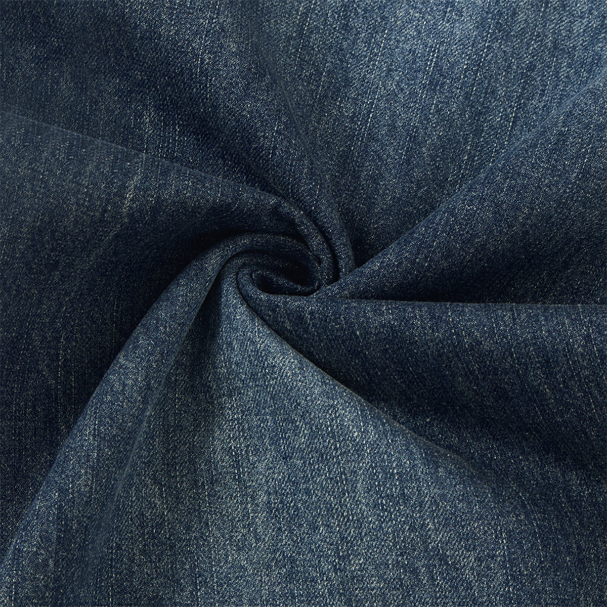 - Deep blue wash with natural distressed fade and creased detailing