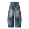 Distressed Paint Splatter Barrel-Leg Jeans