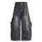Cargo Wide Leg Distressed Wash Denim Jeans