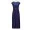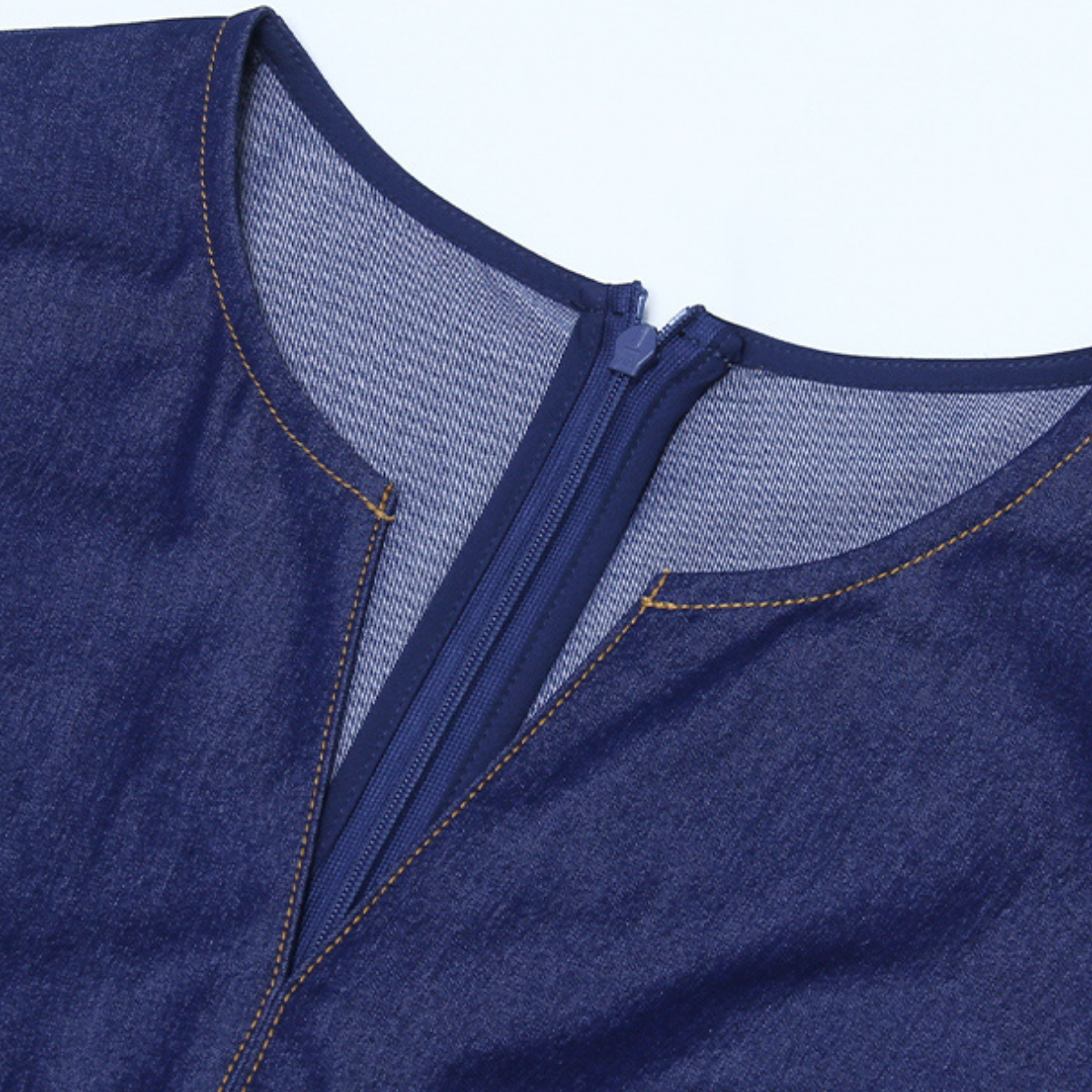 - Women's short sleeve denim maxi dress with belted waist and V-neck