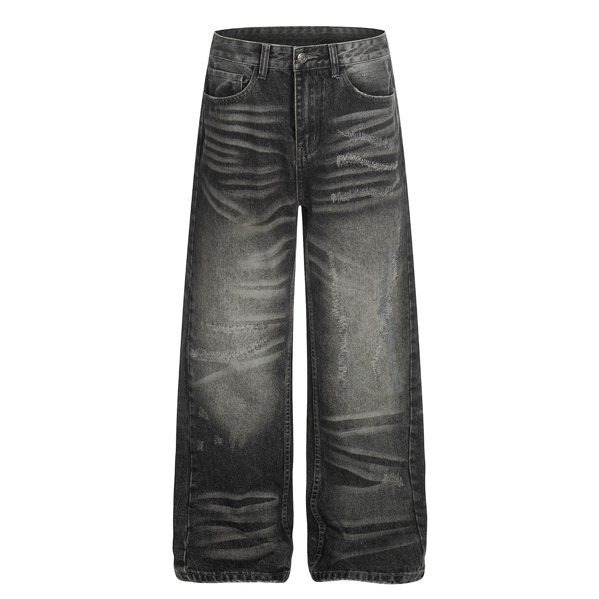 Whisker Fade Distressed High Street Loose Jeans