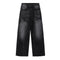 Black Acid Wash Distressed Wide Leg Denim Jeans
