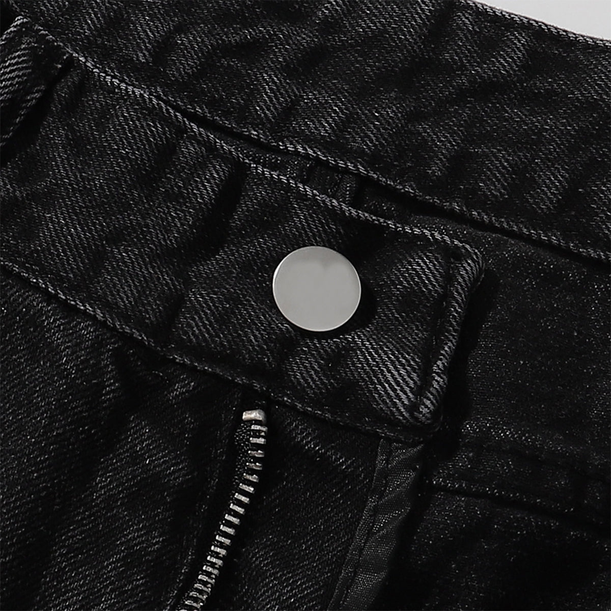 - Zipper fly with button fastening