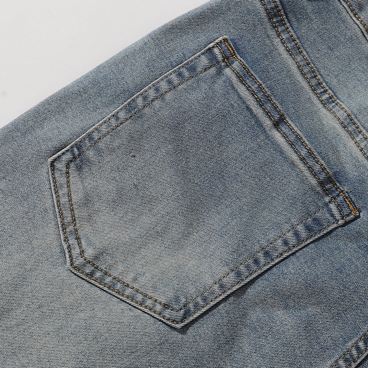 - Light blue wash with natural fading and subtle whiskering for a vintage look