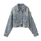 - Women's distressed denim jacket - cropped asymmetrical hem & destroyed accents