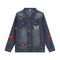- Vintage wash trucker jacket with 3D butterfly embroidery at front