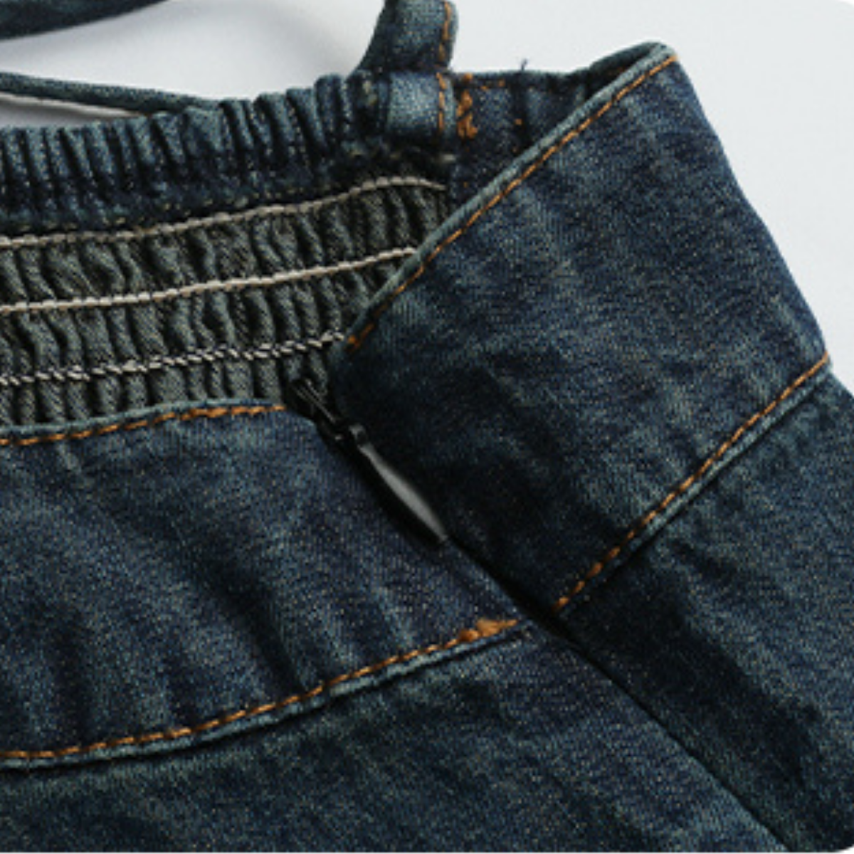 - Women's dark denim maxi dress with spaghetti straps and belt loops