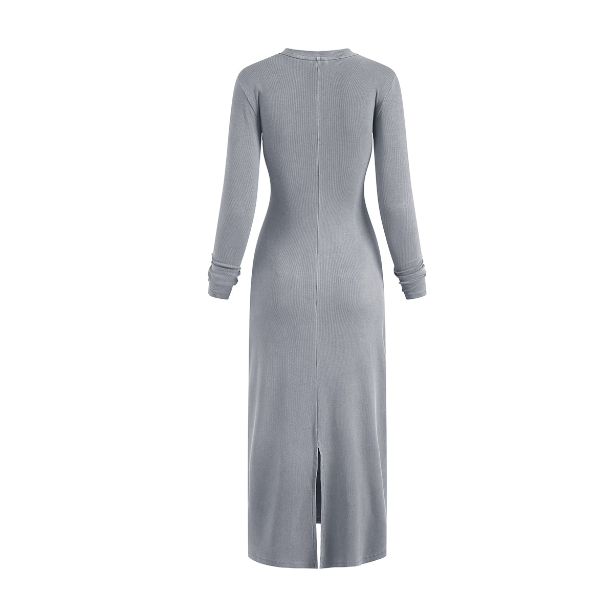 Slim Fit Long Sleeves Ribbed Midi Dress