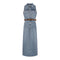 - Women's sleeveless denim maxi dress ¨C button-down jean dress with belted waist