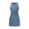 - Women's sleeveless denim mini dress with rhinestone embellishments