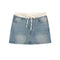 - Double waistband washed denim mini skirt with raw hem