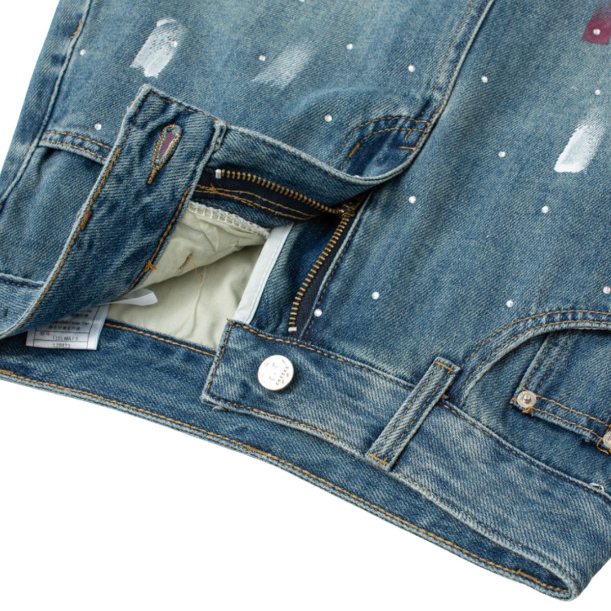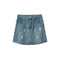 - Women's paint-splattered denim mini skirt | rhinestone-embellished