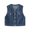 - Women's cropped denim vest - button-front & vintage wash