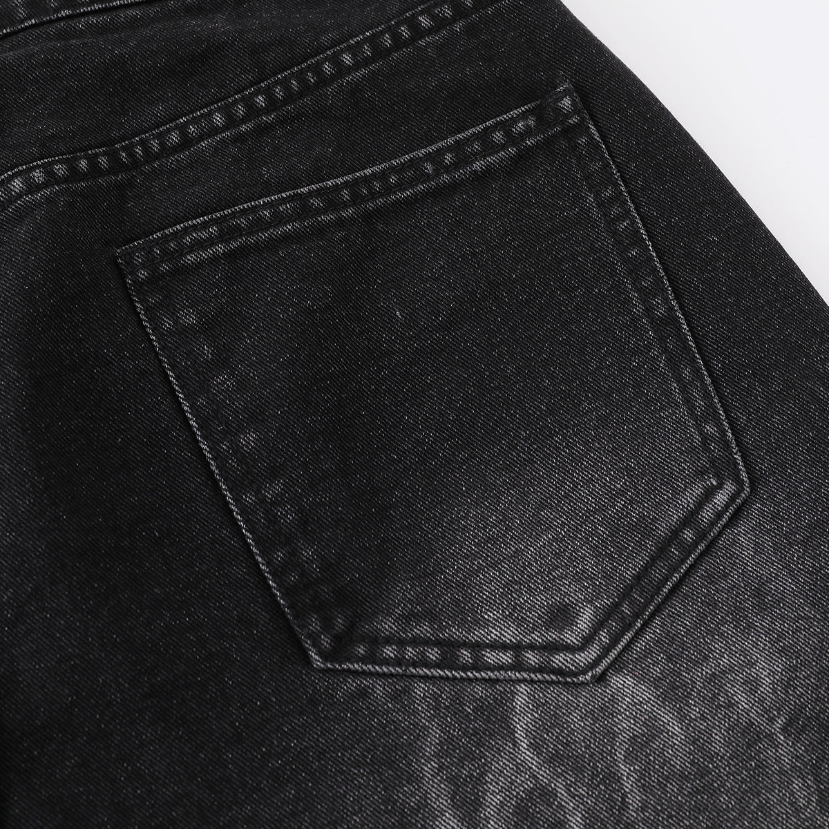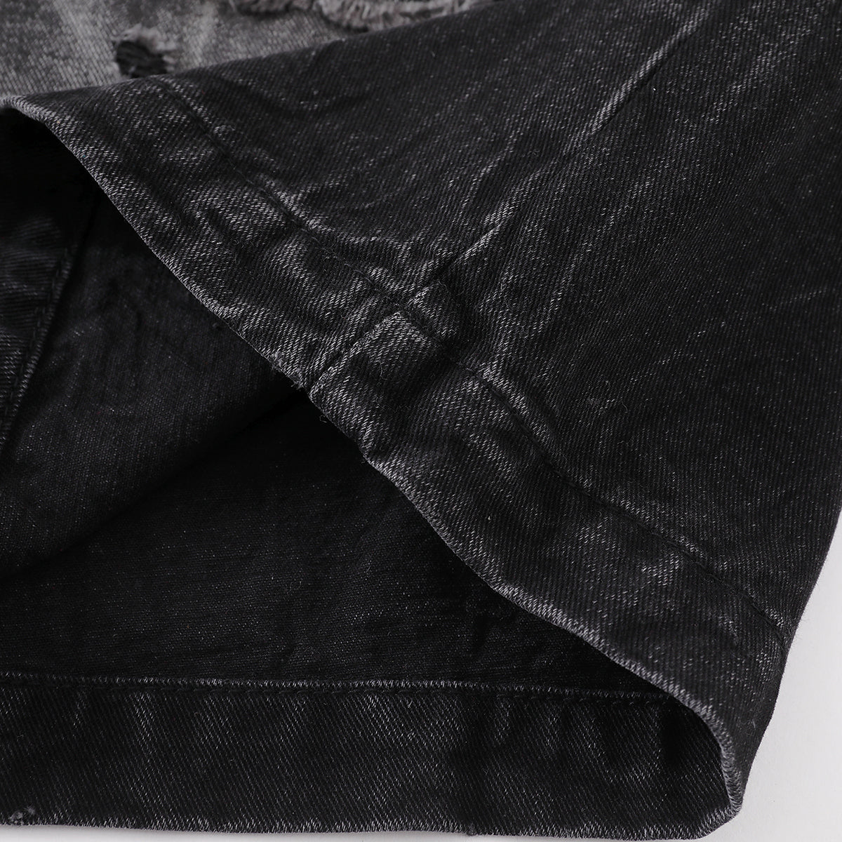 - Deconstructed denim shorts – grunge plaid patches & raw rips