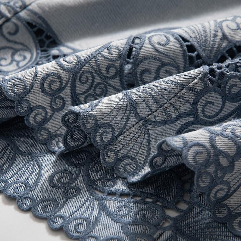 - Women's embroidered denim skirt - patchwork & cut-out design