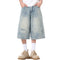 - High-waisted destroyed wide-leg cropped denim jeans - vintage wash