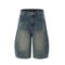 - Baggy jorts in faded medium-wash denim