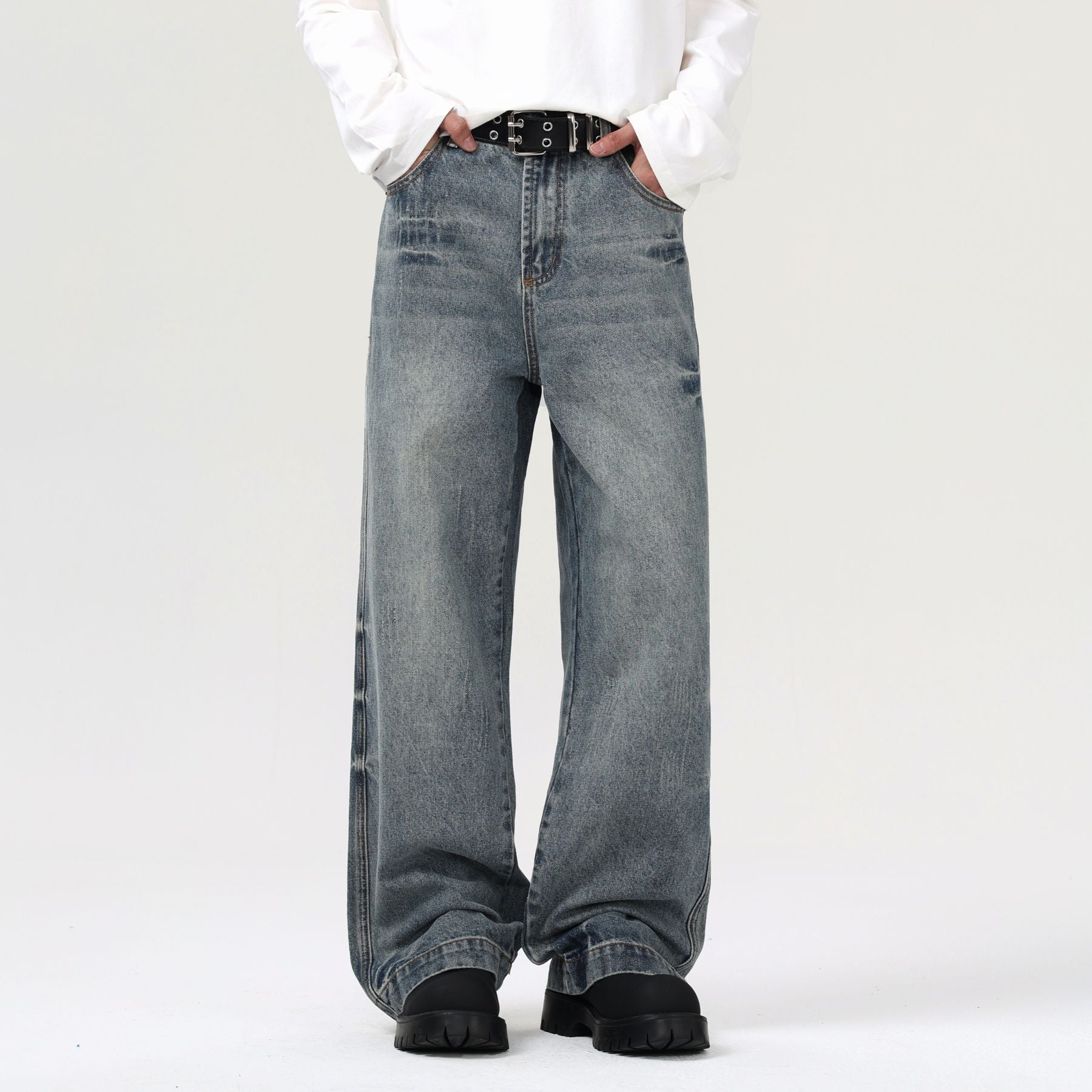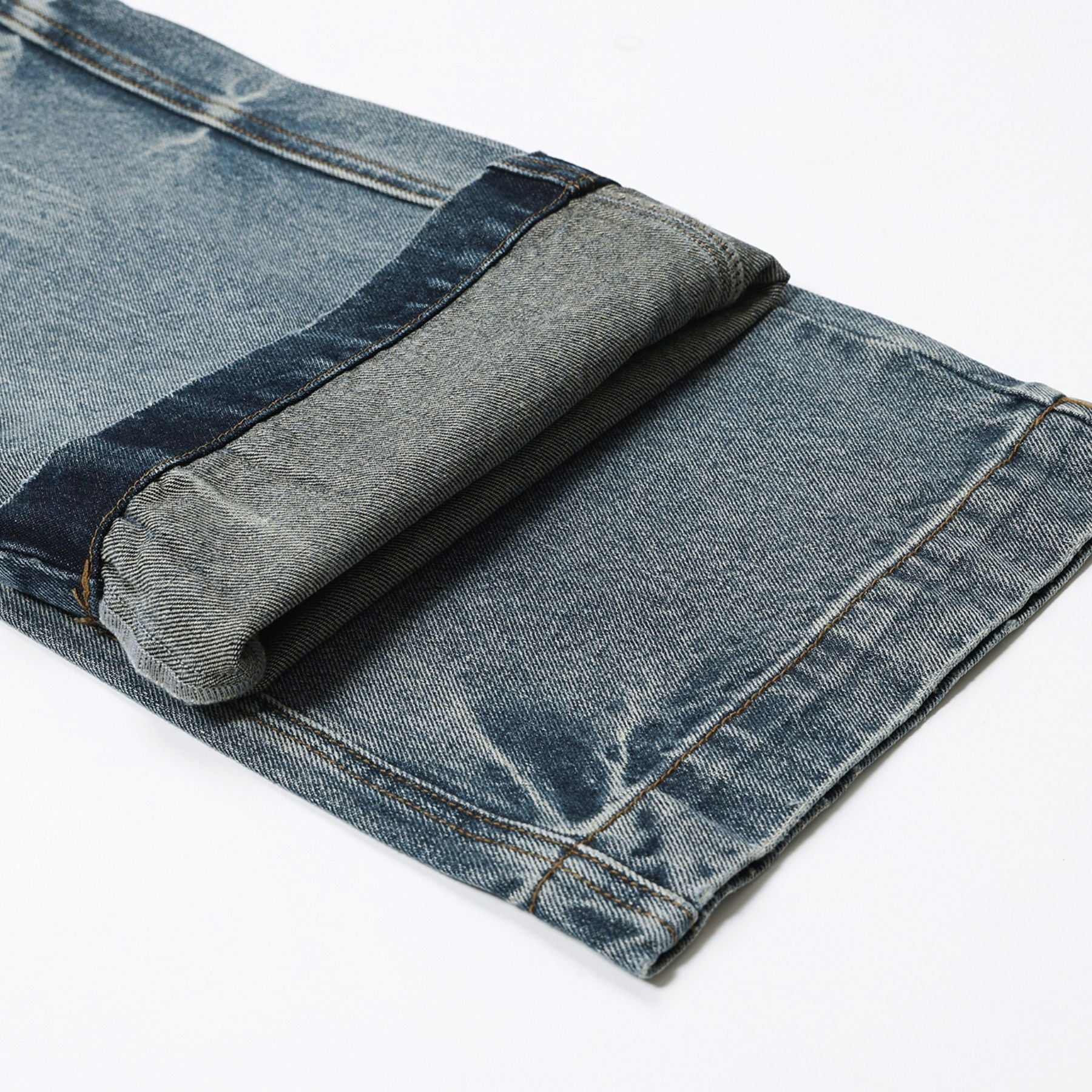 - Light whiskering and fading detail on front and back