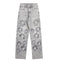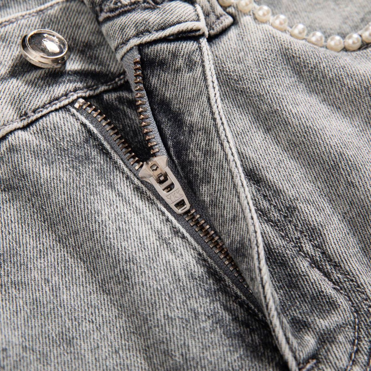 - Vintage-wash jeans with hand-beaded embroidery and floral cut-out details