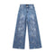 - Floral lace-cut jeans with rhinestone detailing & raw hem