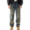 - Heavy distressed and ripped detailing across the front for a rugged, streetwear style