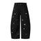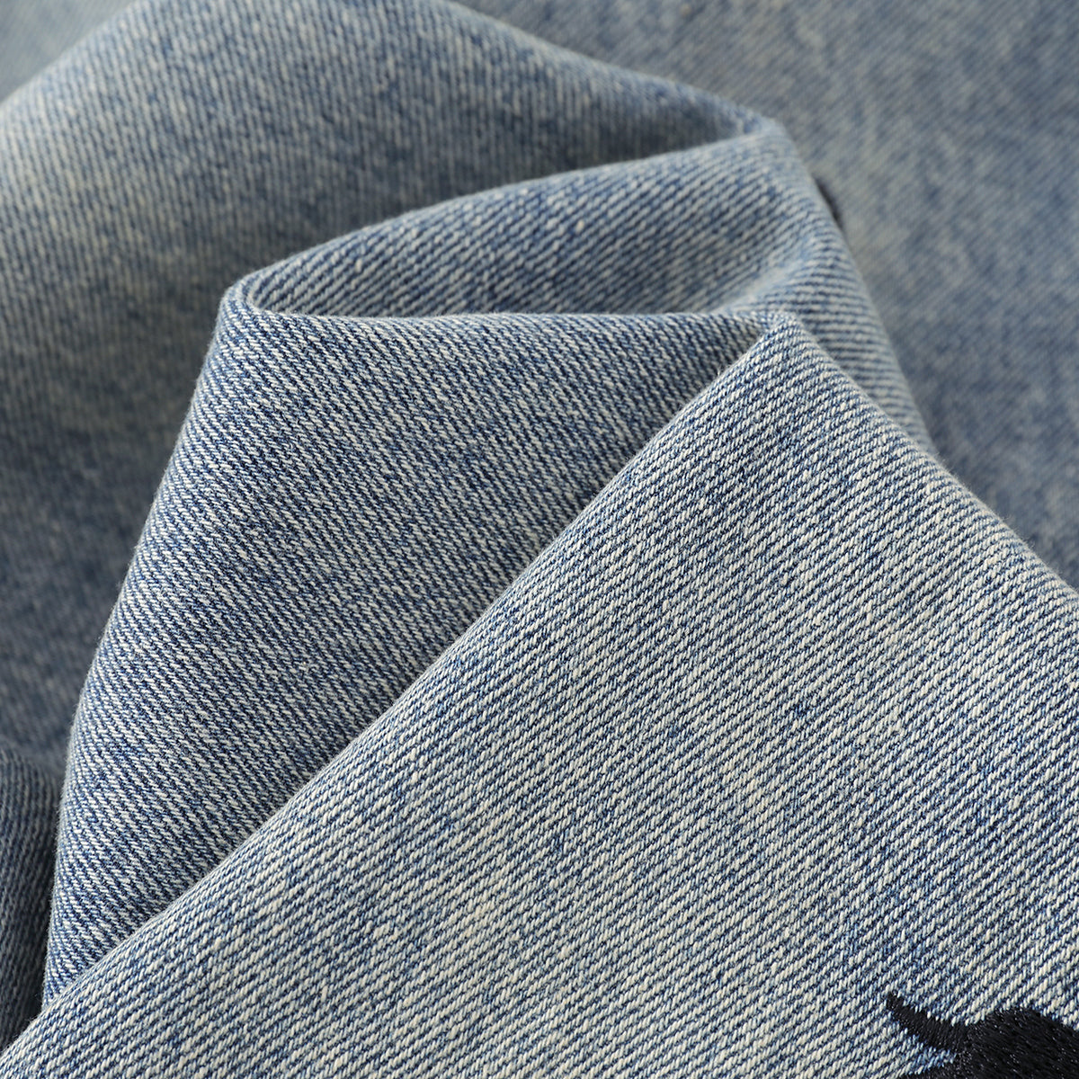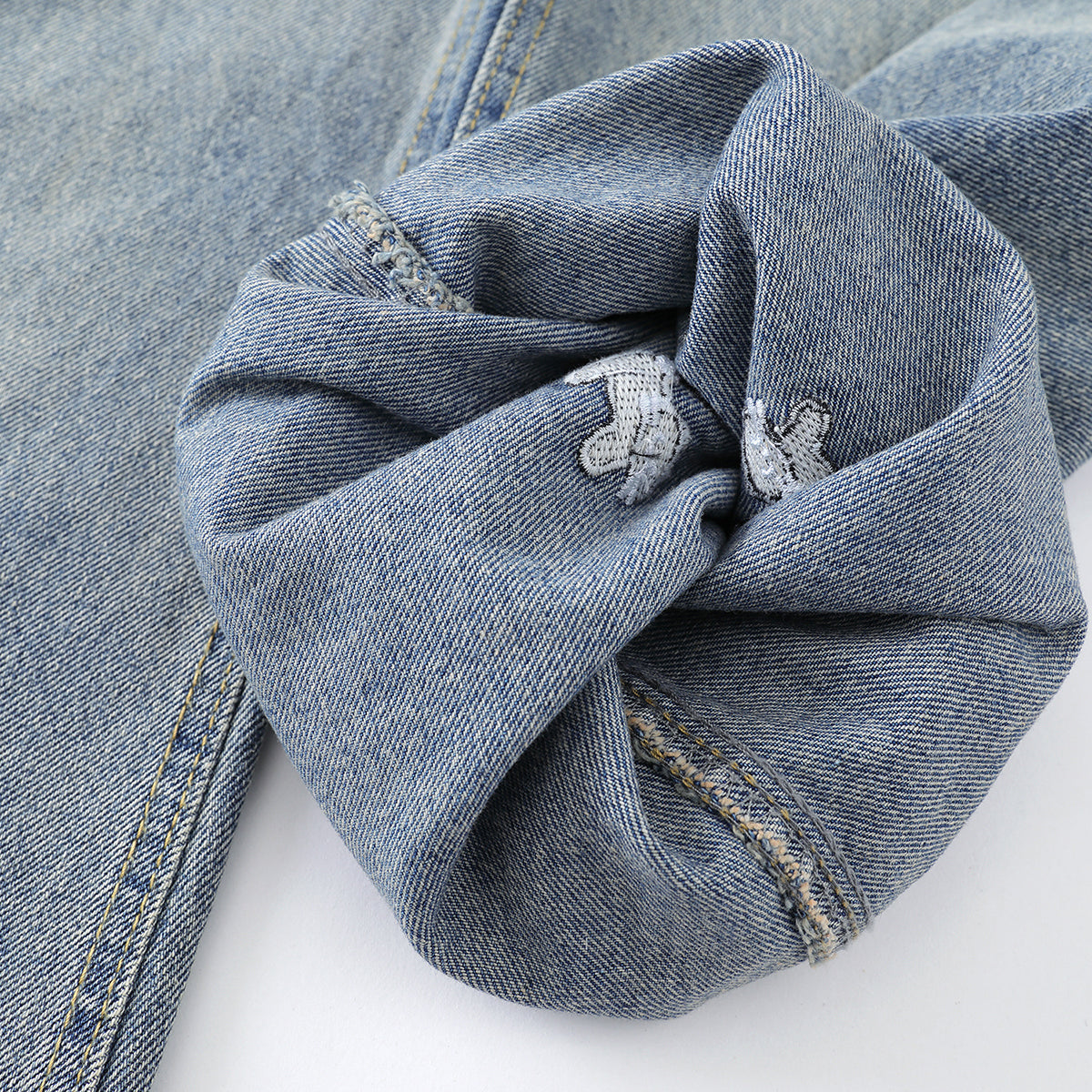 Washed Faded Dog-Embroidered Barrel-Leg Jeans