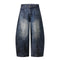 Faded Wash Panel Stitching Barrel-Leg Jeans
