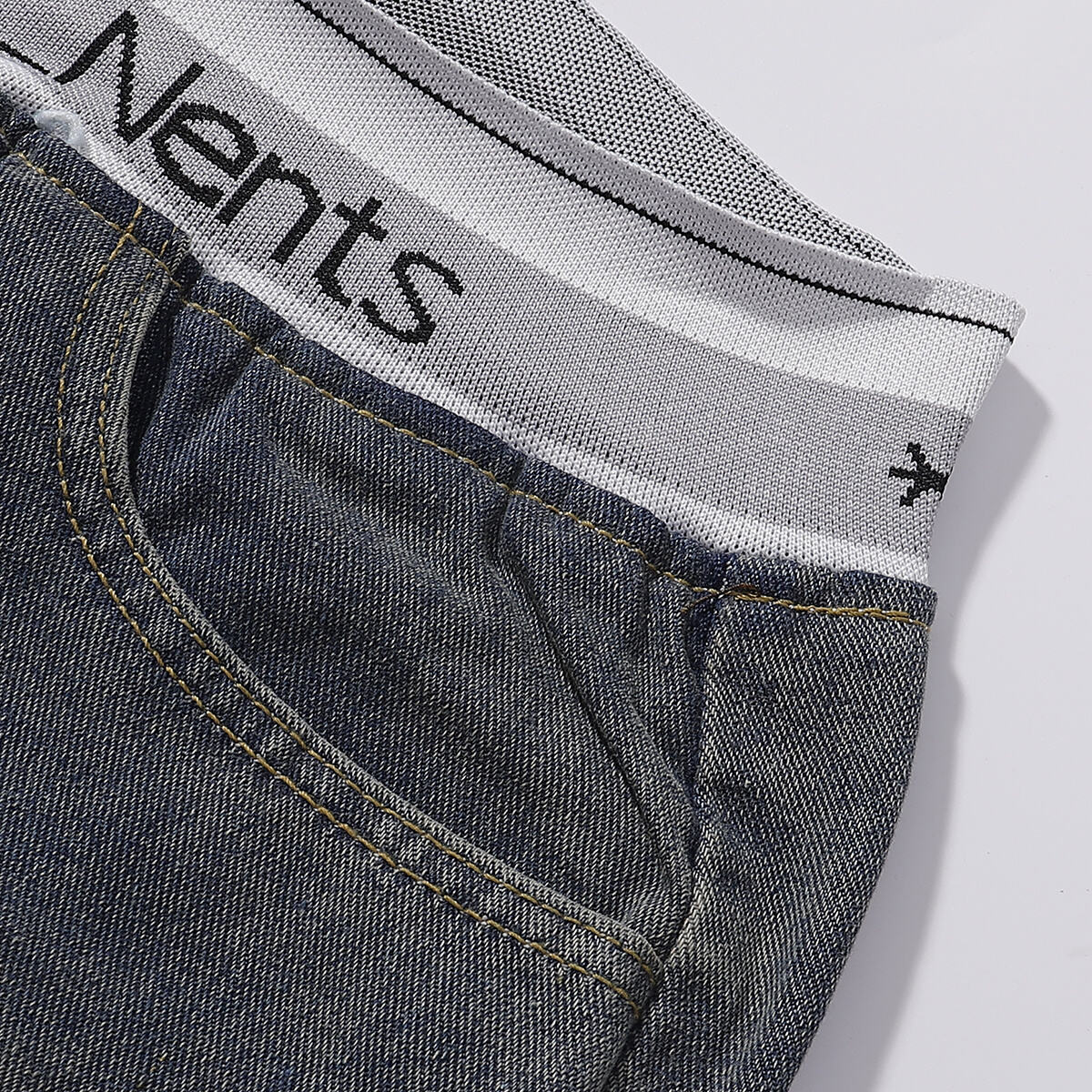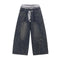 • Unisex streetwear wide leg denim pants with elastic waistband & drawstring