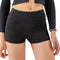 lets you move without restriction. - Mid-waisted knit denim shorts – classic wash with pockets