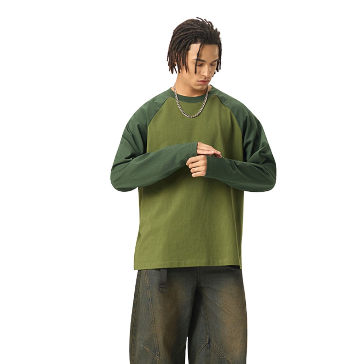 Relaxed Contrasting Colors Raglan Long Sleeve Top 270gsm