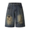 • Gothic denim shorts – creepy spider web print
