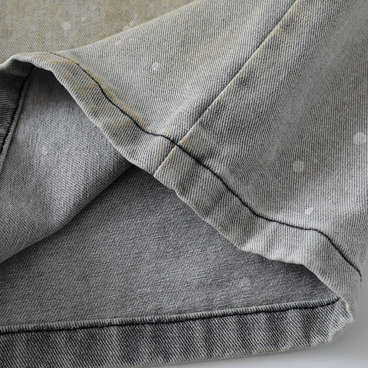 Splash Print Distressed Wash Denim Bermuda Shorts
