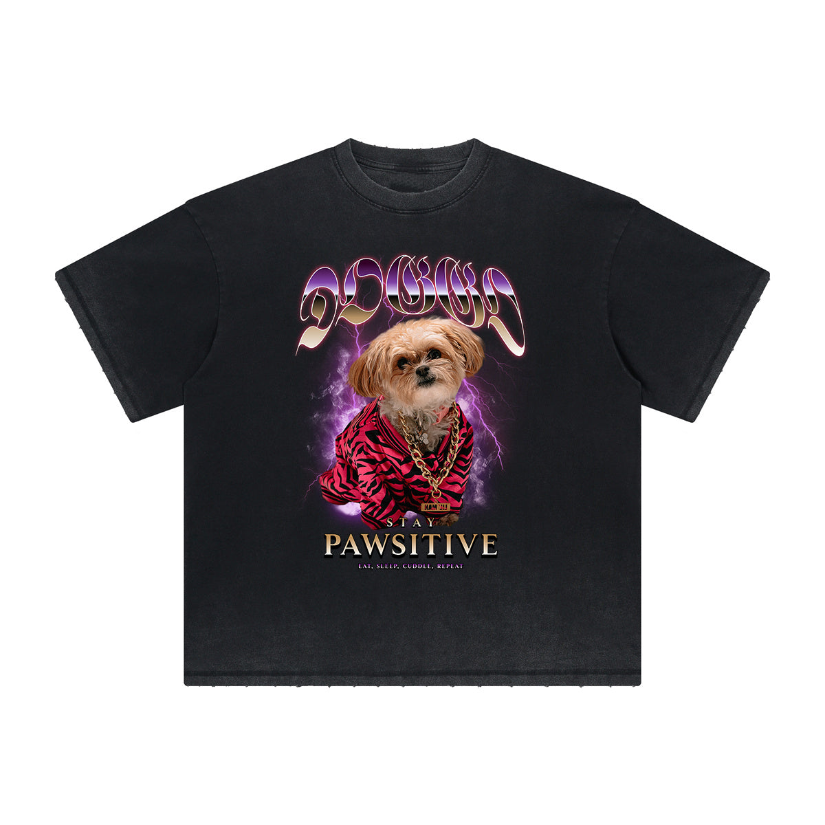 - Stone wash distressed t shirt, frayed process