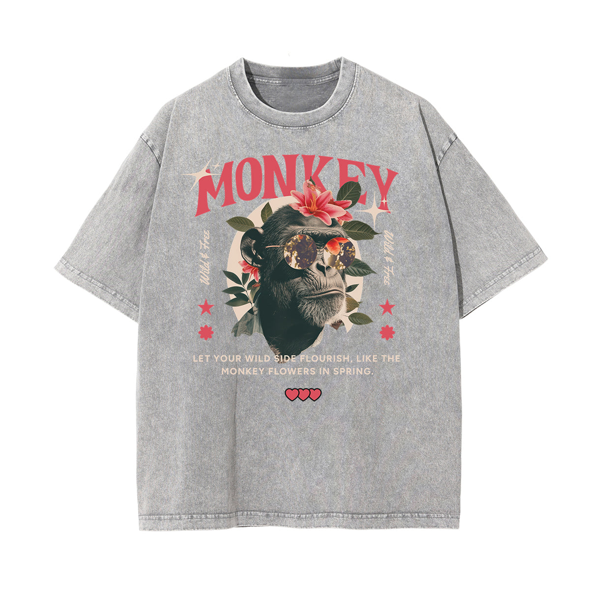 Stone Wash Floral Pattern T Shirt