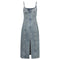 - Women's denim bodycon midi dress – sleeveless spaghetti strap jean dress with back zipper