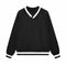 - Ribbed collar, cuffs, and hem with contrast stripes