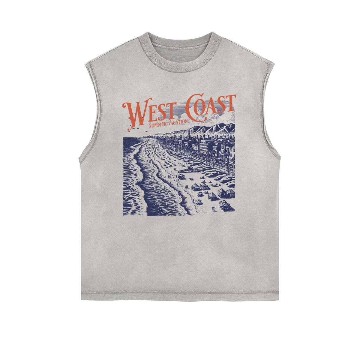 - Camiseta descolorida sin mangas, estilo con borde deshilachado