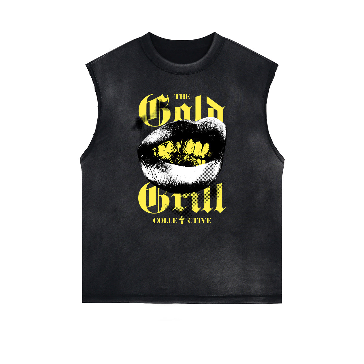 - Camiseta descolorida sin mangas, estilo con borde deshilachado
