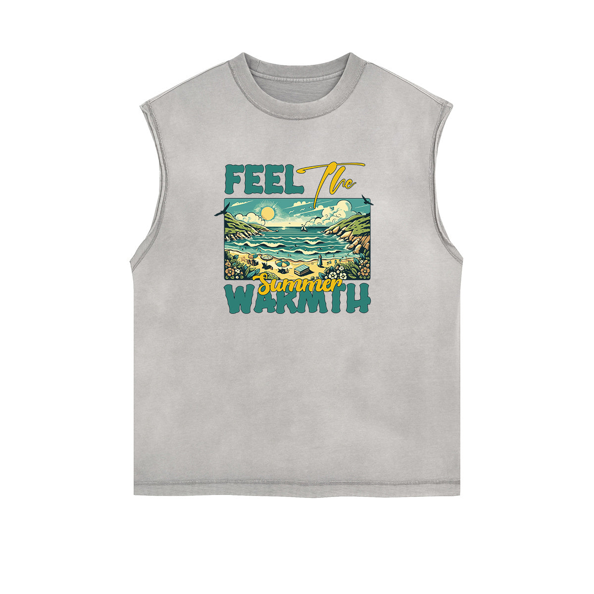Camiseta gráfica urbana sin mangas con lavado a la piedra