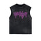 Camiseta descolorida sin mangas con gráfico de grafiti rosa neón