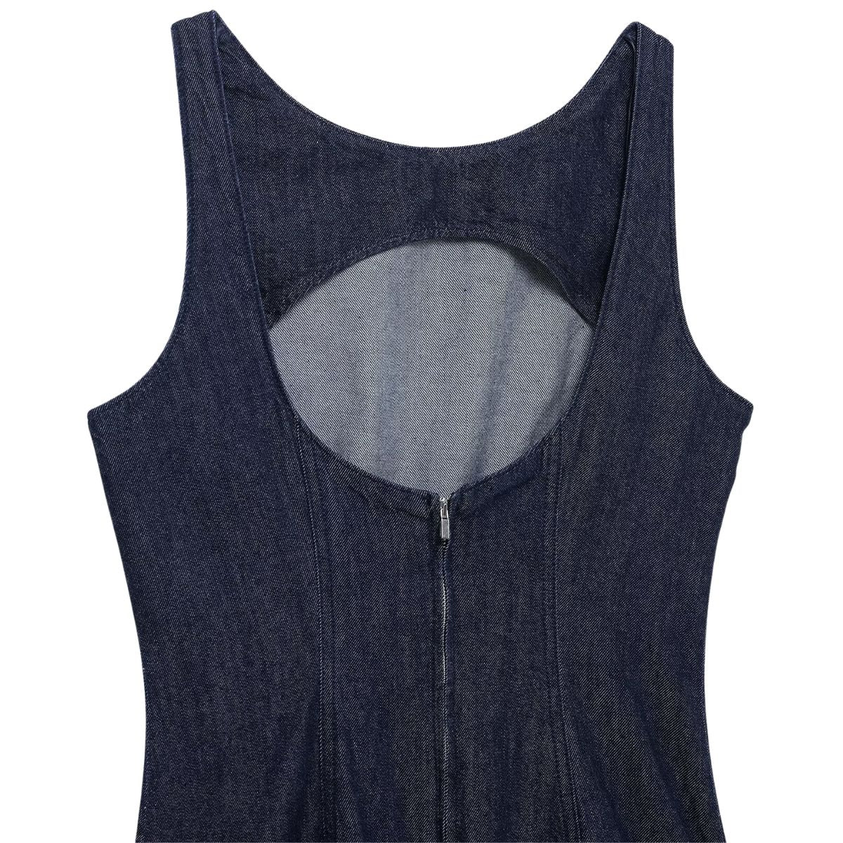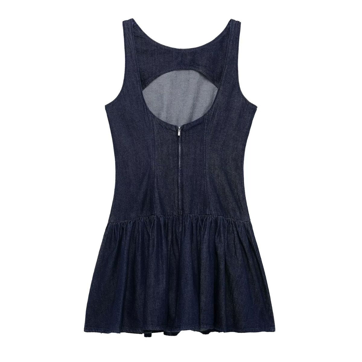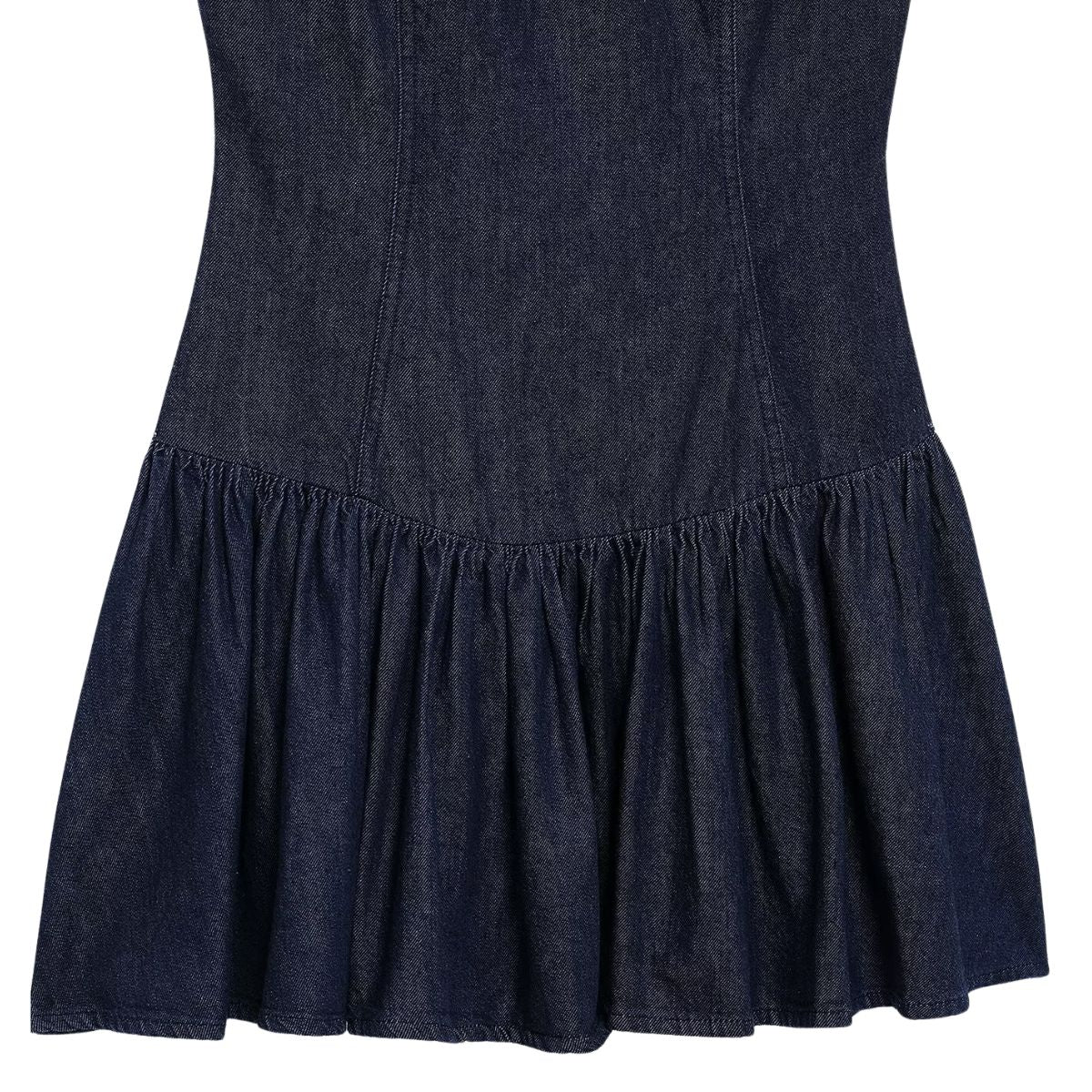- Bordado artesanal pesado en falda vaquera con bordes sin rematar