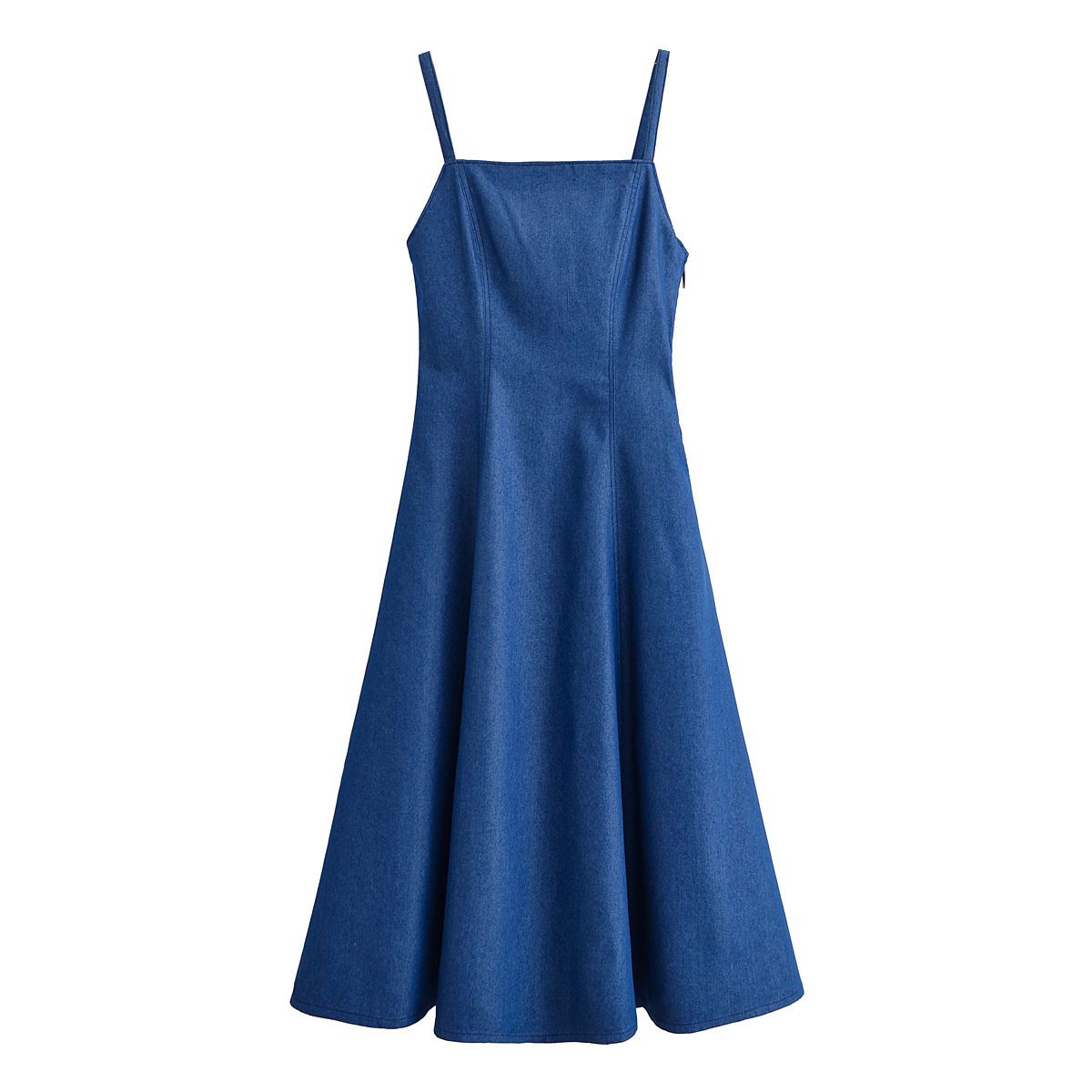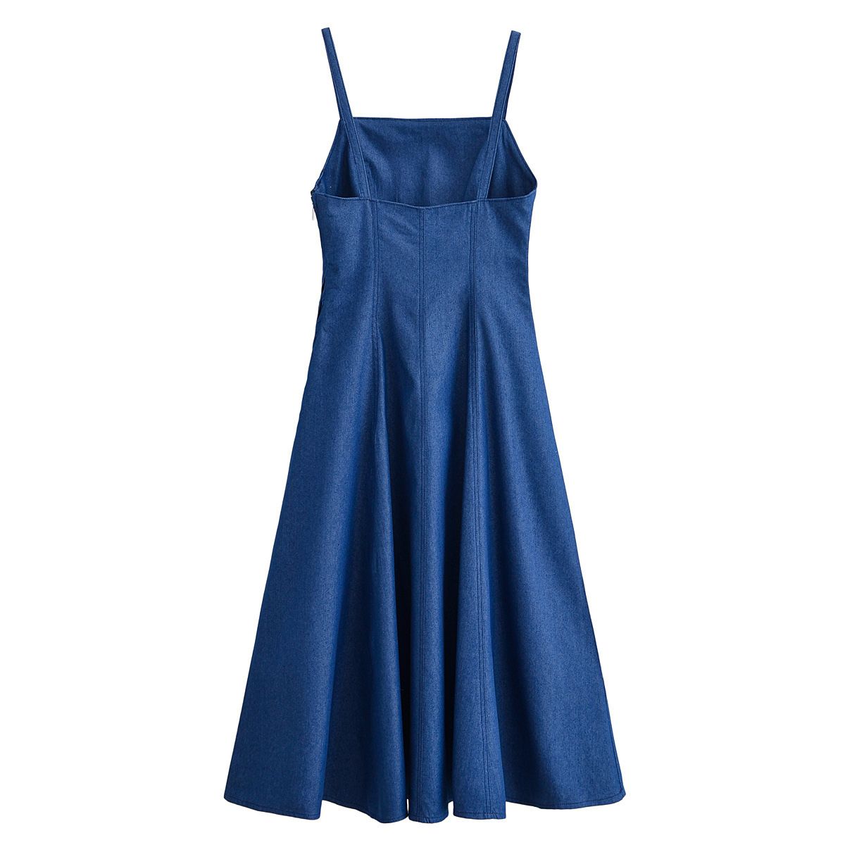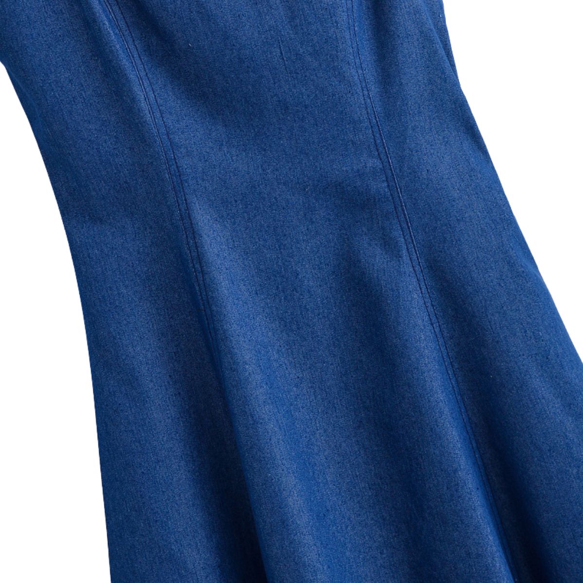 - Bordado artesanal pesado en falda vaquera con bordes sin rematar