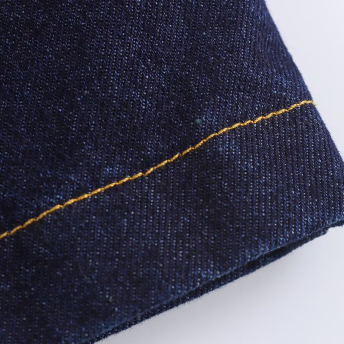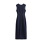 - Sleeveless dark denim bodycon maxi dress with contrast stitching