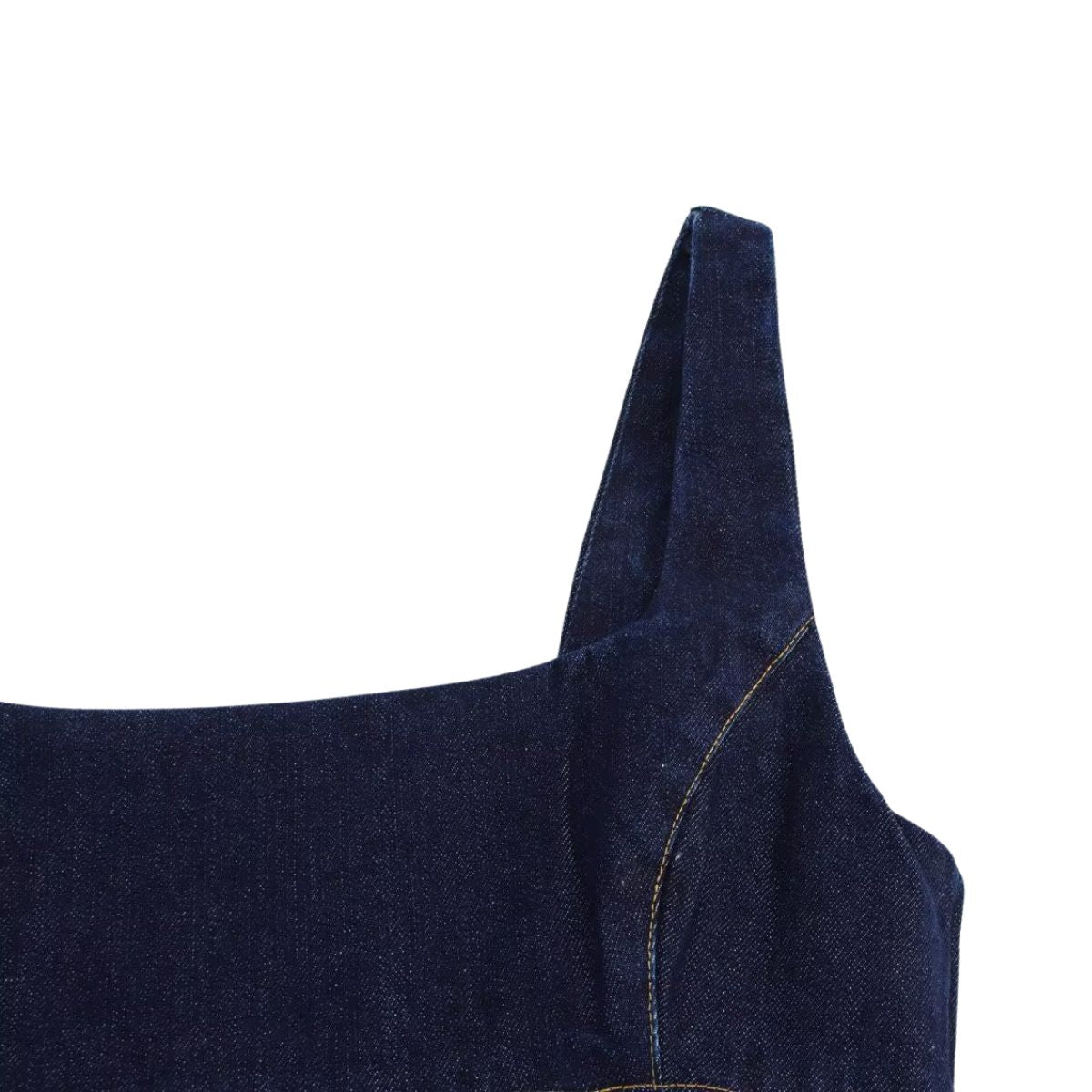 - Bordado artesanal pesado en falda vaquera con bordes sin rematar