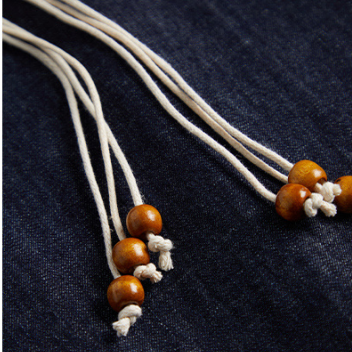 - Women's sleeveless denim midi dress with beaded neckline and waist tie
