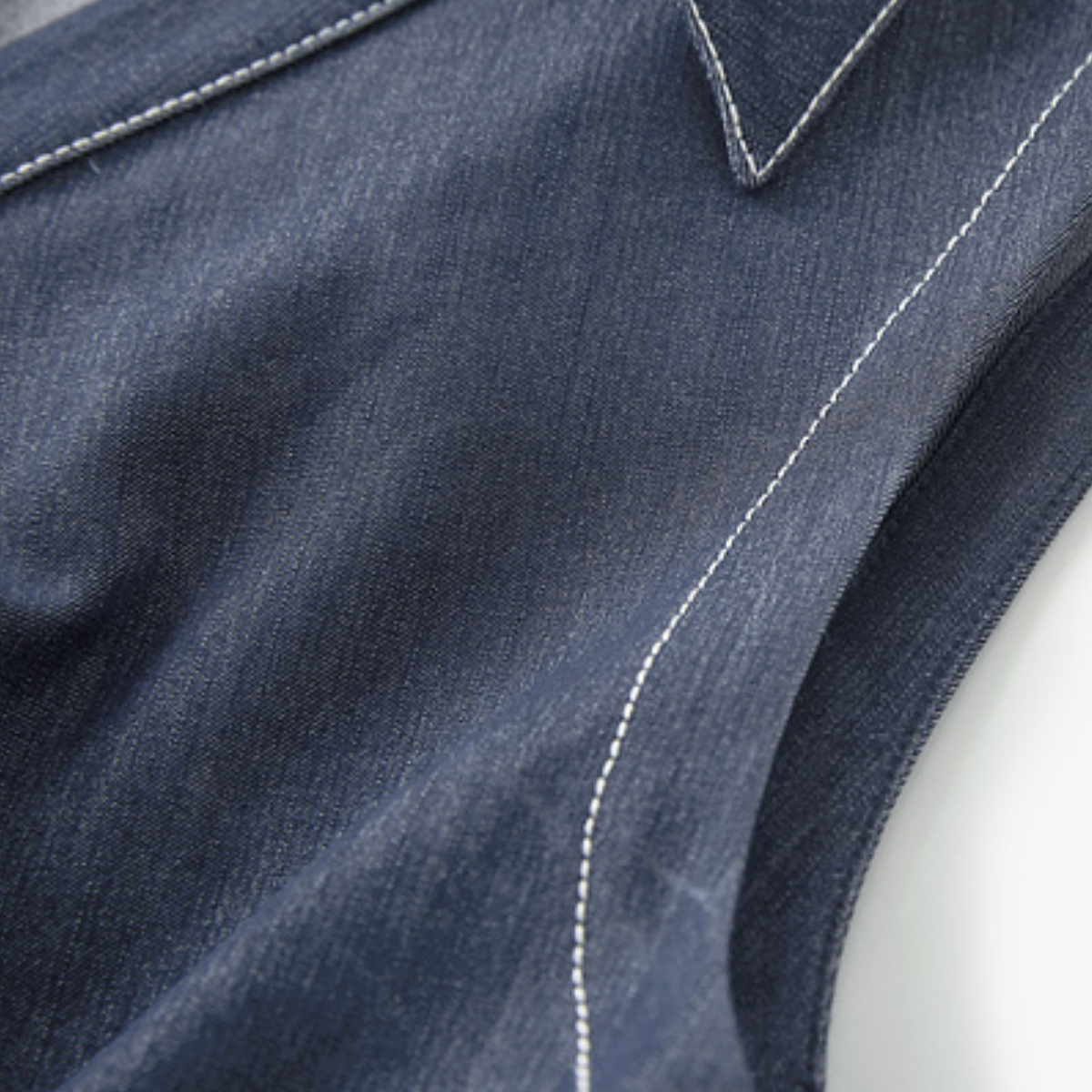 - Women's sleeveless denim shirt dress – button front midi dress with belted waist