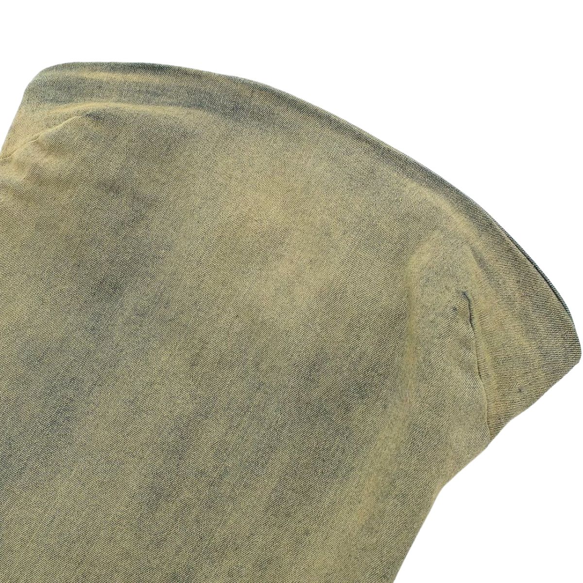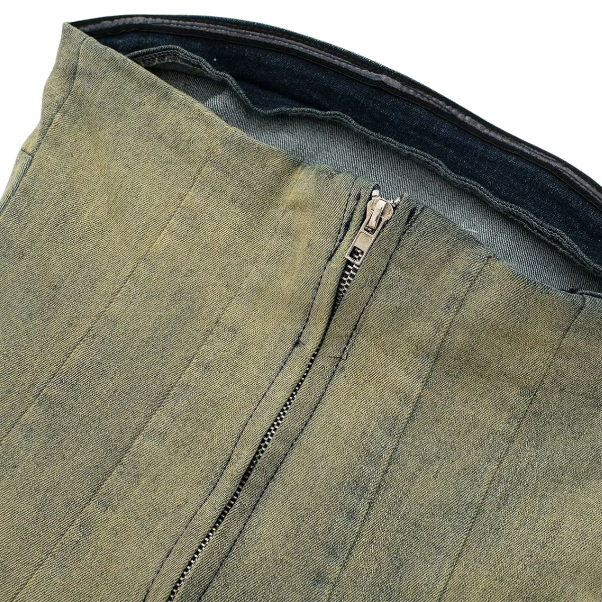 - Bordado artesanal pesado en falda vaquera con bordes sin rematar