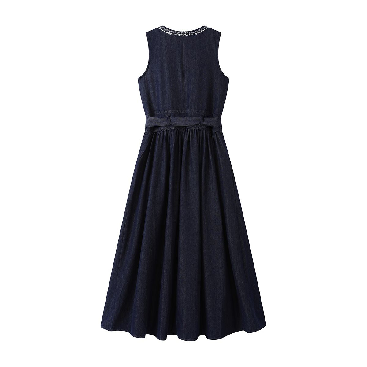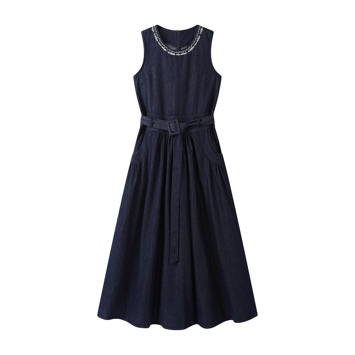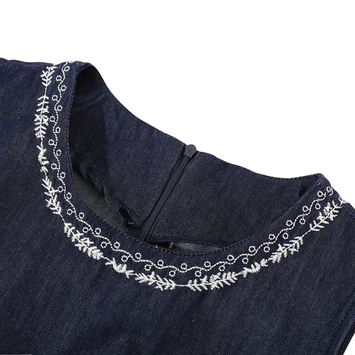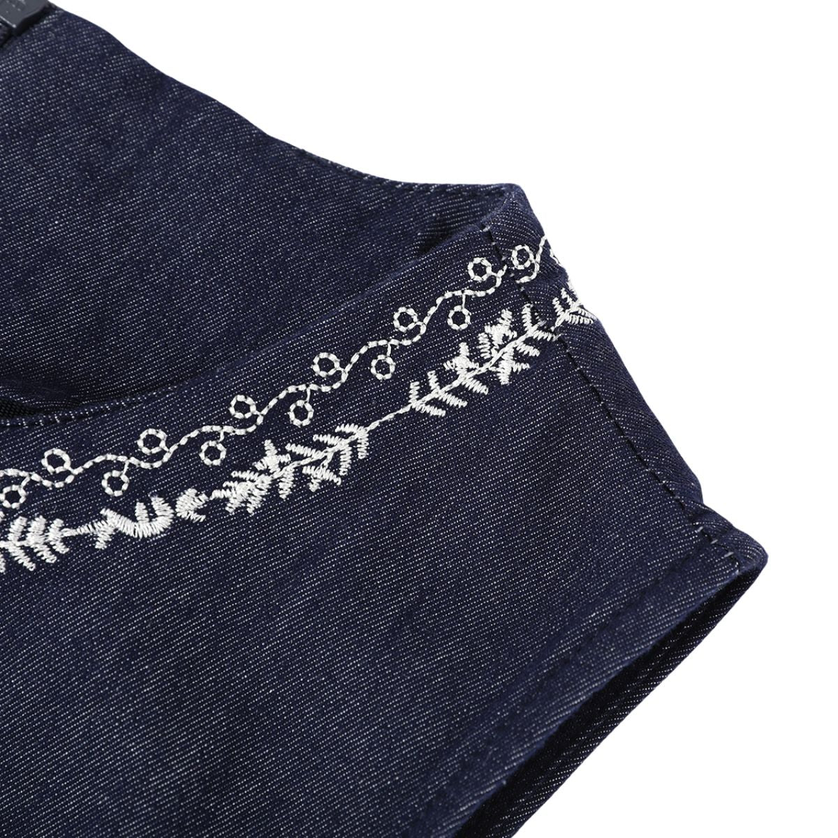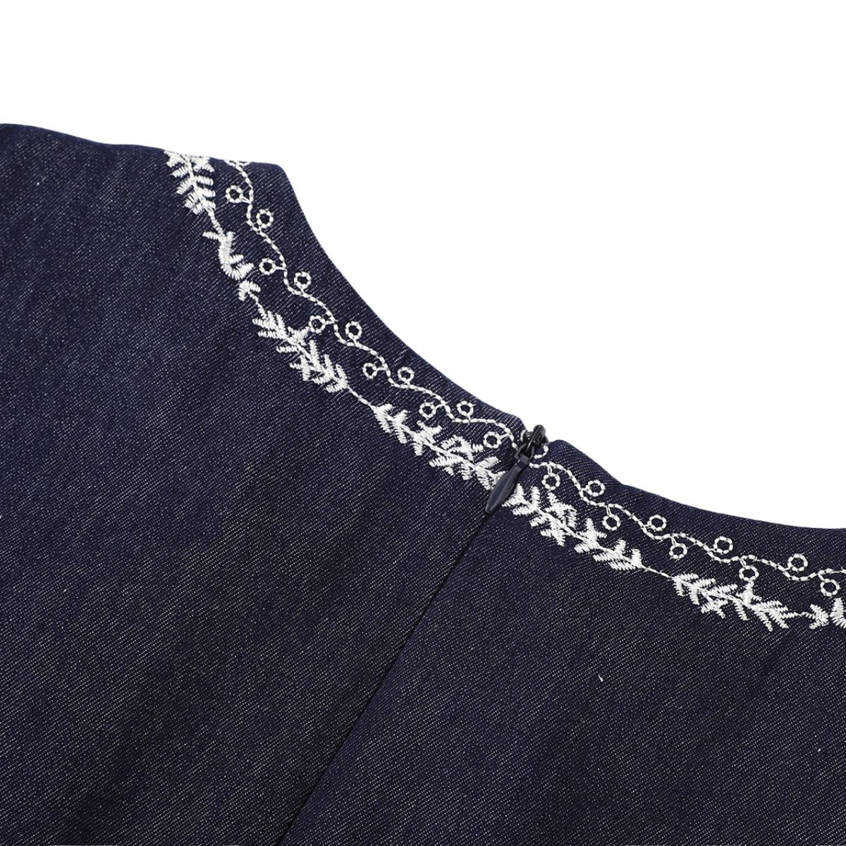 - Bordado artesanal pesado en falda vaquera con bordes sin rematar