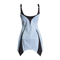 - Two-tone denim mini dress with contrast panels and asymmetrical hem